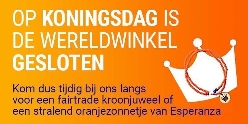 Koningsdag, maandag 27 april 2026 is Wereldwinkel Nuenen gesloten.